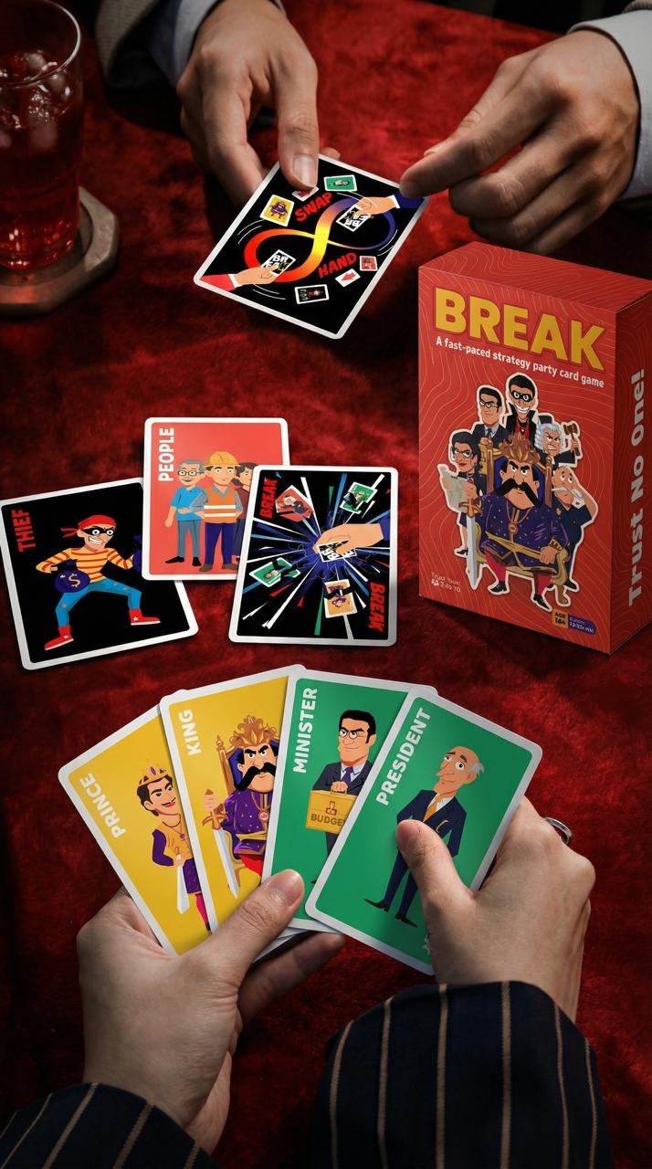 Break is an exciting strategy card game designed for players who enjoy competition, clever tactics, and unpredictable twists. The game brings together strategy, luck, and powerful action cards that allow players to steal, swap, and break their opponents’ progress.